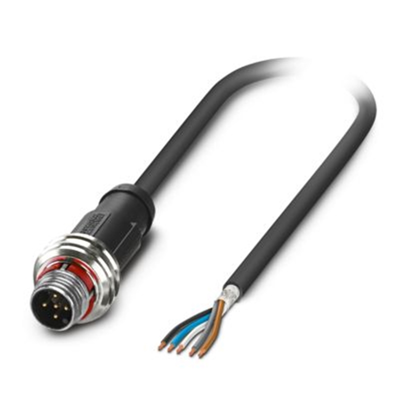 Câble pour capteurs/actionneurs, 5-pôles, PUR exempt d'halogène, gris-noir RAL 7021, blindé (Advanced Shielding Technology), connecteur mâle droit M12, codage: A Push-Pull, câblé avec déconnecté, sur extrémité libre, L= 1,5 m