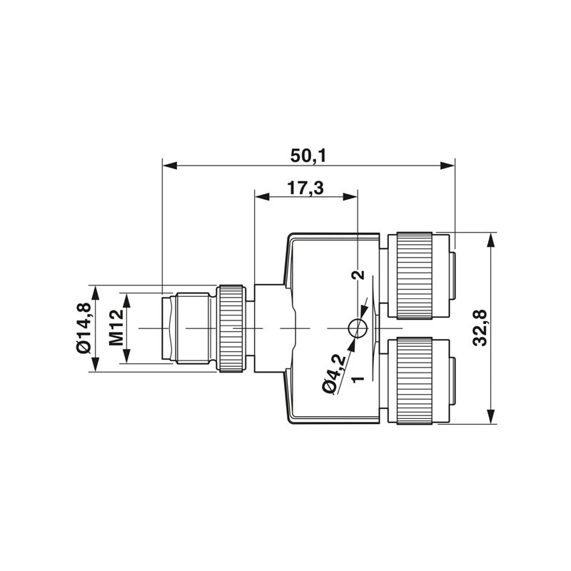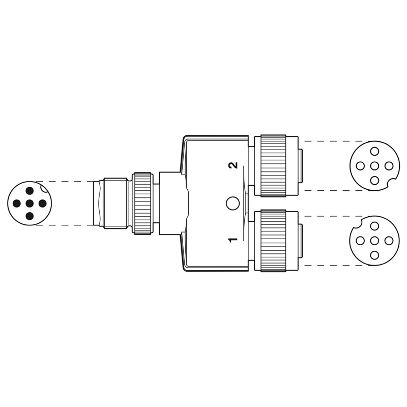 Répartiteur en Y, 5-pôles, connecteur mâle droit M12 SPEEDCONNEC, codage: A, sur Connecteur femelle droit M12 SPEEDCONNEC, codage: A et Connecteur femelle droit M12 SPEEDCONNEC, codage: A, Répartiteur parallèle, Connecteur femelle M12 fileté non pivotant
