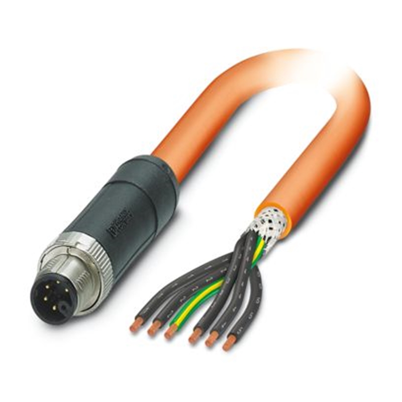 Câble d'alimentation, 6-pôles, PVC, orange RAL 2003, blindé (Advanced Shielding Technology), connecteur mâle droit M12, codage: M, sur extrémité libre, longueur de câble: 10 m, pour courant alternatif jusqu'à 8 A/690 V