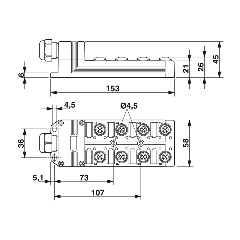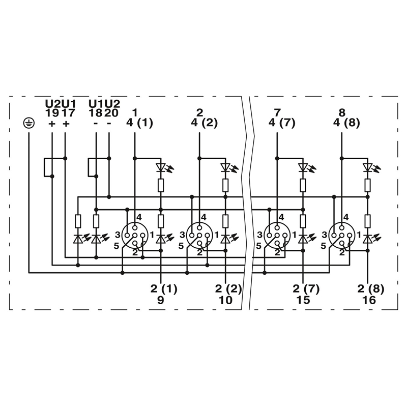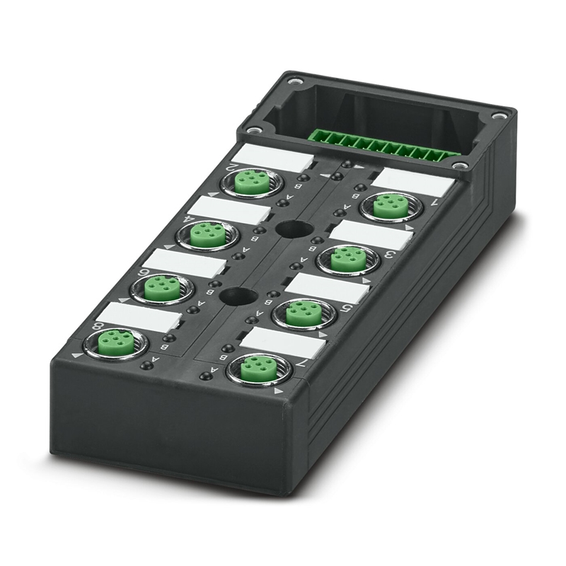 Répartiteur pour capteurs/actionneurs, embase, application: Standard, type de raccordement: Connecteur femelle M12 SPEEDCONNEC Métal, nombre de prises: 8, nombre de pôles: 5, détrompage: A, affectation des prises: double, affichage d'état: Oui, PNP; racc. câble multicond.: Raccordement vissé enfichable, blindage: non