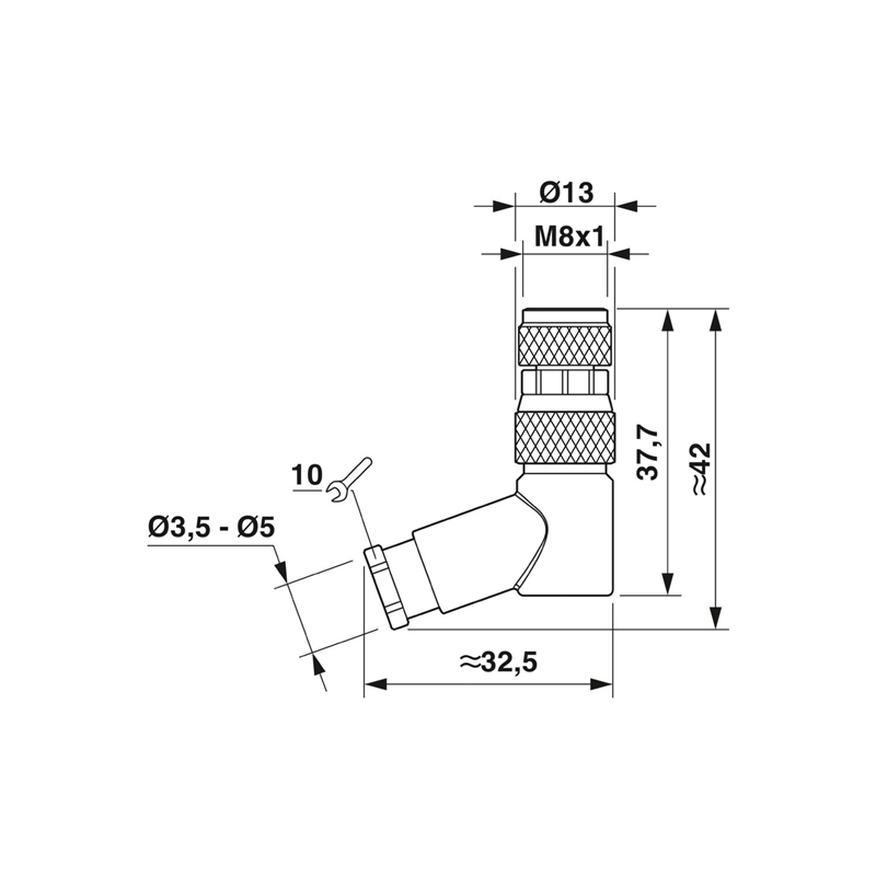 Connecteur, Universel, 3-pôles, connecteur femelle coudé M8, codage: A, Raccordement vissé, matériau de la molette: Laiton, nickelé, diamètre extérieur du câble 3,5 mm ... 5 mm