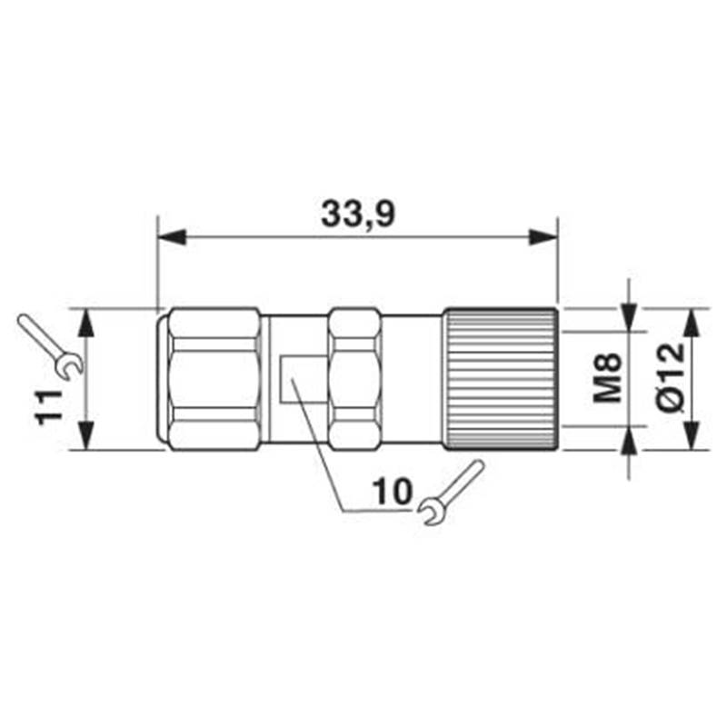 Connecteur pour capteurs/actionneurs, connecteur femelle, droit, 3 pôles, M8, Piercecon, molette métallique, diamètre de câble 5 mm max.