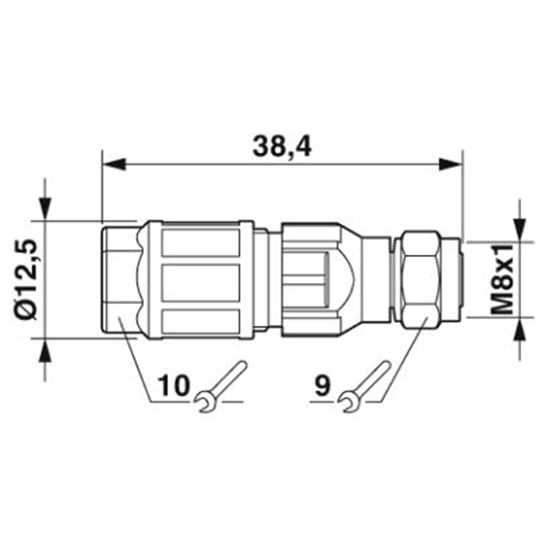 Connecteur, 3-pôles, connecteur femelle droit M8, Détrompage: A, Raccordement autodénudant, matériau de la molette: Acier inoxydable 1.4305, diamètre extérieur du câble 2,5 mm ... 5 mm