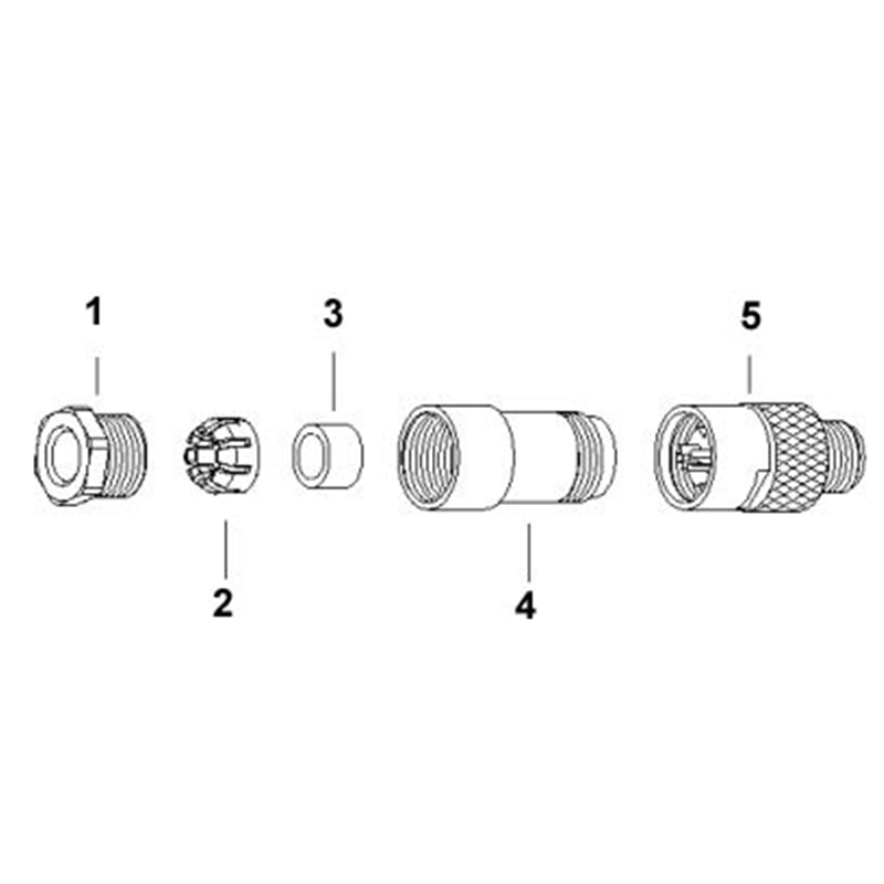 Connecteur, 4-pôles, Connecteur femelle droit M8, détrompage A, Raccordement soudé, Matériau de la molette: laiton, nickelé, Diamètre extérieur du câble 3,5 mm ... 5 mm