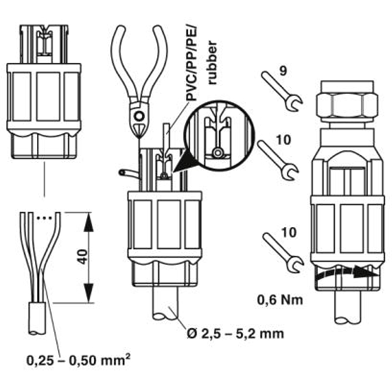 Connecteur, 4-pôles, connecteur femelle droit M8, Détrompage: A, Raccordement autodénudant, matériau de la molette: Acier inoxydable 1.4305, diamètre extérieur du câble 2,5 mm ... 5 mm