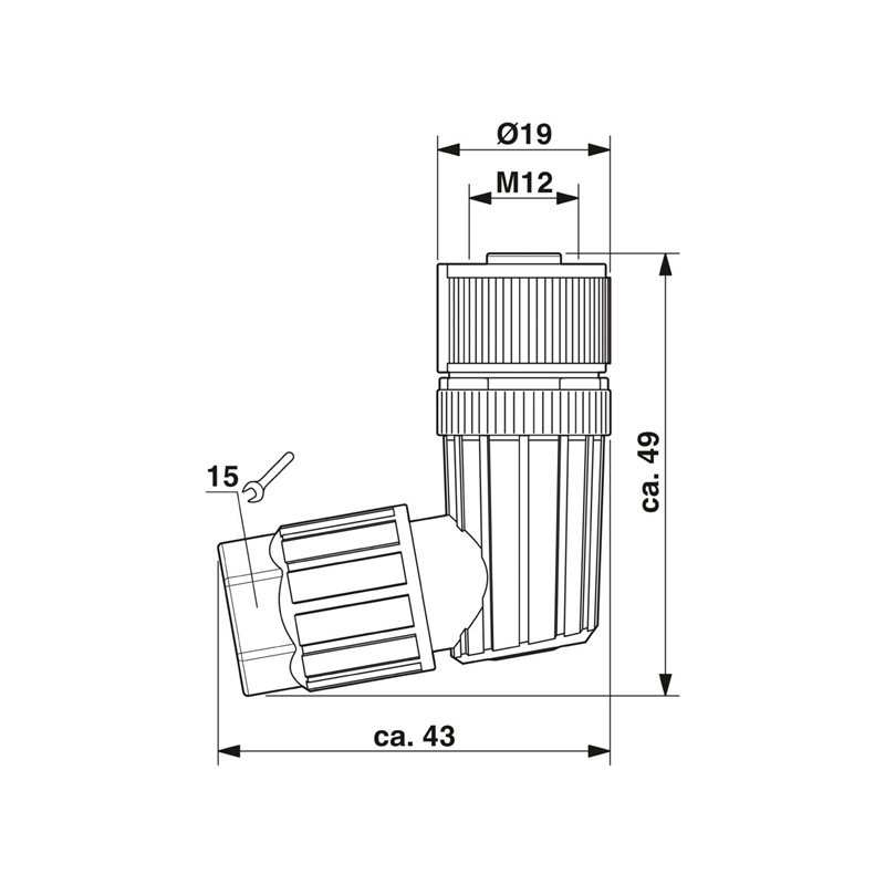 Connecteur confectionnable, M12x1 (A), Femelle, Coudé, 4 pôles; Bornes Push-In, câble Ø4-8 mm
