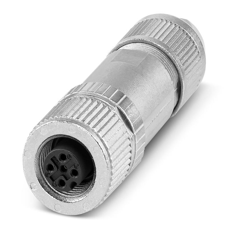 Connecteur, 5-pôles, blindé, Connecteur femelle droit M12, détrompage A, Raccordement Push-in, matériau de la molette : Zinc moulé sous pression, nickelé, Diamètre extérieur du câble 4 mm ... 8 mm