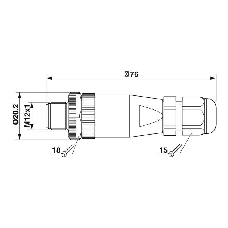 Connecteur mâle pour capteurs/actionneurs, droit, 5 pôles, M12, détrompage A, raccordement vissé, molette métallique, presse-étoupe Pg7 SKINTOP®
