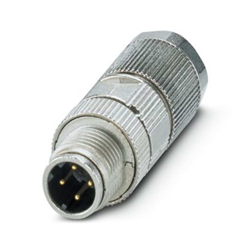 Connecteur de données, PROFINET CAT5 (100 Mbit/s), 4P, blindé, connecteur mâle droit M12, D, Raccordement à sertir, matériau de la molette: Zinc moulé sous pression, étamé, diamètre extérieur du câble 6,5 ... 10 mm, sans contacts à sertir