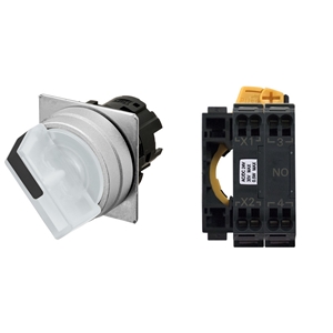 Bouton-poussoir A22NW Ø22, 2 positions, Lumineux, lentille Métal brossé métal, Manuel, Couleur Blanc, DEL Jaune, 1NO 1NF, 24 VDC