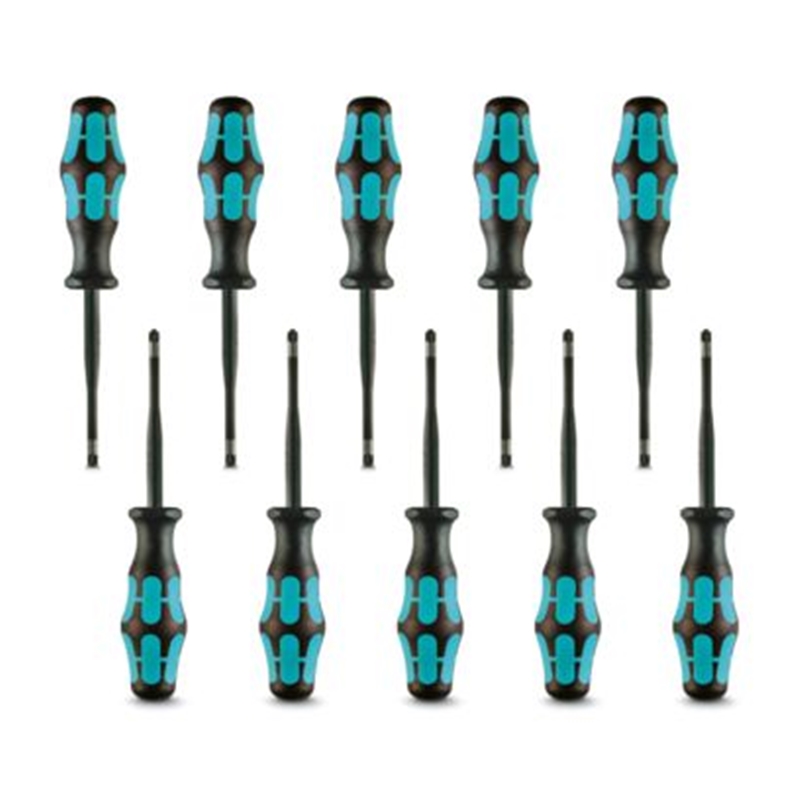 Tournevis cruciforme PZ (taillé au laser), avec isolation étroite intégrée à la lame, taille : PZ 2 x 100, manche à deux composants, antidérapant, lot de 10