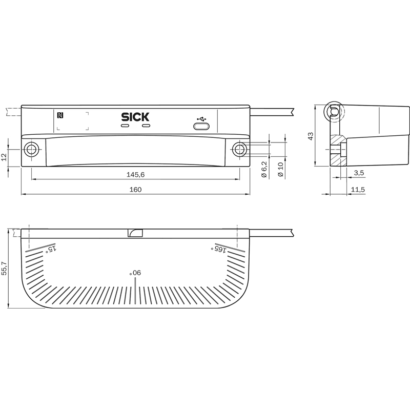• Parfaitement conçu pour répondre aux besoins des AGC guidés sur rails : niveau de performance c, portée de 1,1 m, angle de balayage de 150°.