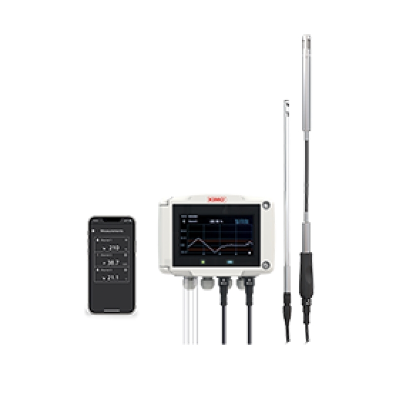 Capteur transmetteur multifonction Si-C320. 4x sorties analogiques configurables (4-20 mA/0-20 mA ou 0-10 V/0-5 V) et 1x sortie numérique RS485 (Modbus RTU). 2x entrées pour sondes externes interchangeables, 1x emplacement pour module de pression interchangeable, 1x emplacement pour module communication sans fil et 1x emplacement pour module relais (les sondes, les modules de pression, communication sans fil et relais sont vendus séparément, vérifier les modèles disponibles dans la documentation). Enregistrement interne des mesures. Sans afficheur. Boîtier ABS IP66, résistant au peroxyde d'hydrogène. Alimentation 24 Vac/24 Vdc. Livré avec certificat d'ajustage et support de fixation mural. Liste des accessoires disponibles en option dans la fiche technique.