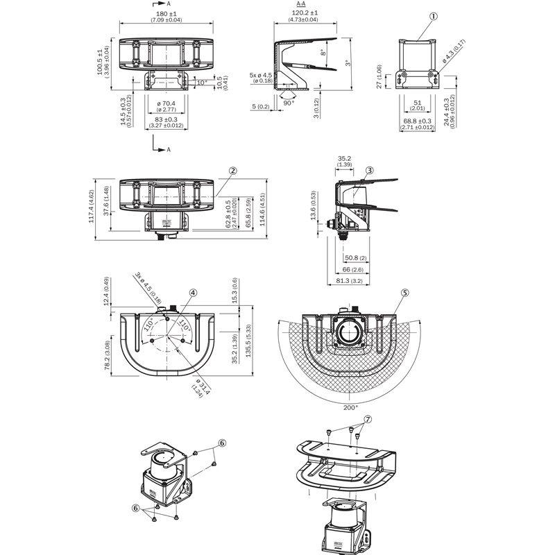 Équerre de fixation pour picoScan100 avec protection contre les intempéries intégrée 200°
