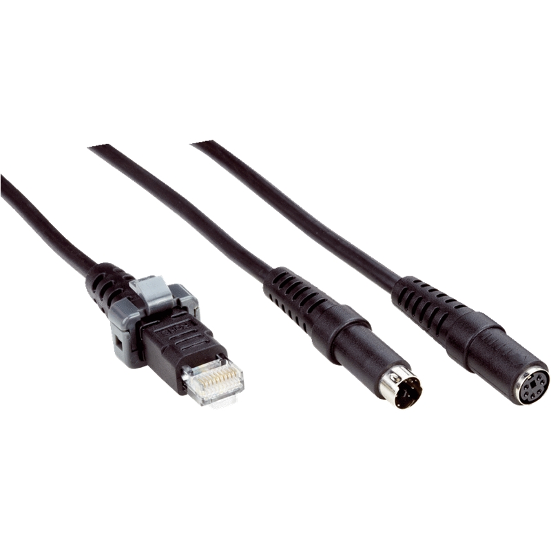 Connecteur / Câble de raccordement; Type: Câble de connexion; Type de signal: PS/2; Raccordement A: Connecteur femelle, connecteur mâle, Mini-DIN, Mini-DIN; Raccordement B: Connecteur RJ45, mâle; Câble: 3 m, câble spiralé; Blindage: Non blindé; Description: Pour le bouclage de clavier, longueur du câble 3,6 m (extensible jusqu’à 3 m), PS/2