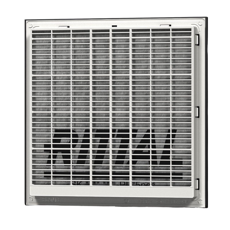 Le filtre de sortie sert, en combinaison avec le ventilateur à filtre correspondant, à évacuer la chaleur dissipée des armoires électriques, à aérer l'armoire électrique et à protéger les composants sensibles à la température. Cela est réalisé avec l'apport direct d'air ambiant, dont la température doit être inférieure à la température intérieure admissible de l'armoire électrique.