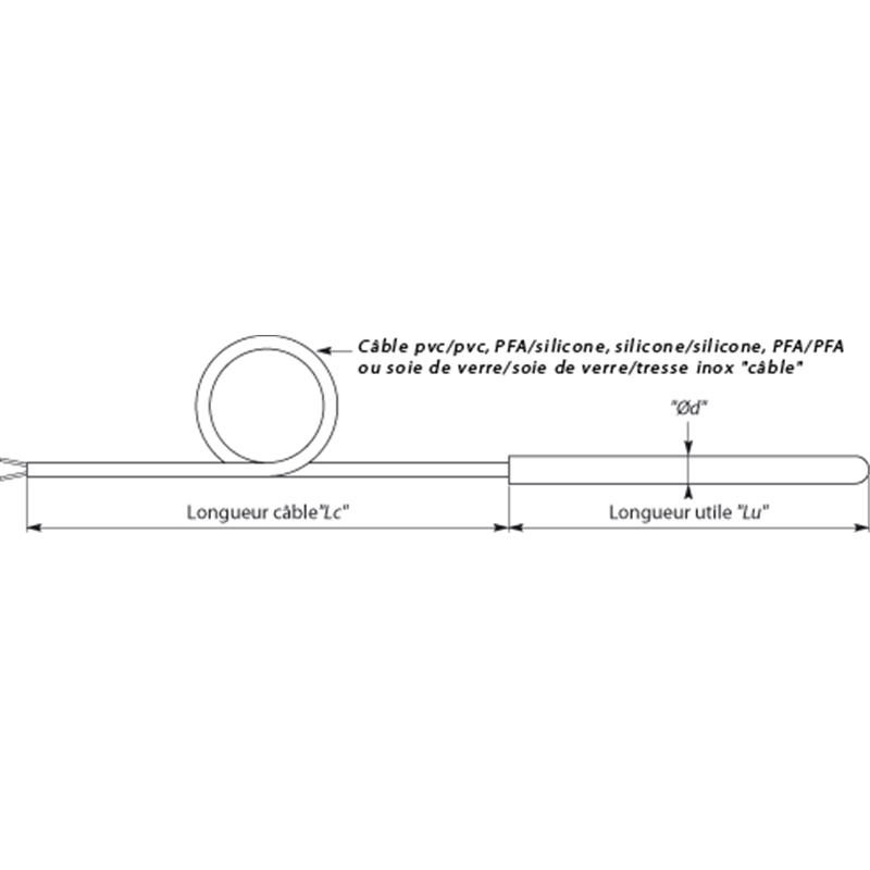 Sonde Pt100x1 3 fils Ø6x0,4mm lg350mm, câble 6m PFA/PFA