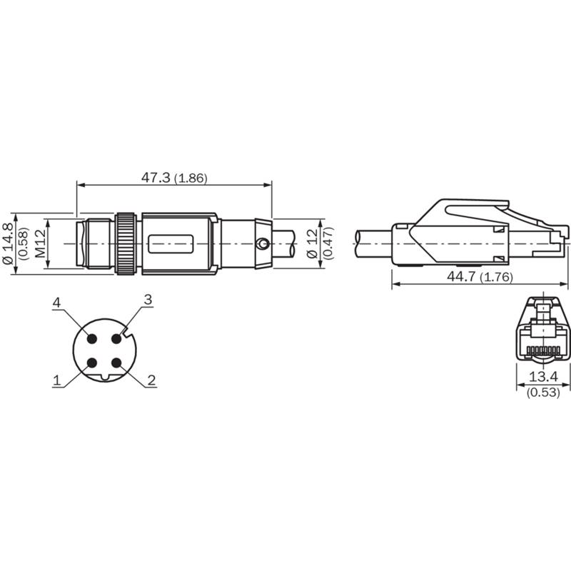 • Raccordement A: Connecteur M12, mâle, droit, 4 pôles, codé D