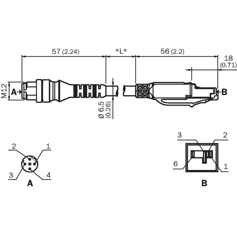 • Raccordement A: Connecteur M12, mâle, droit, 4 pôles, codé D