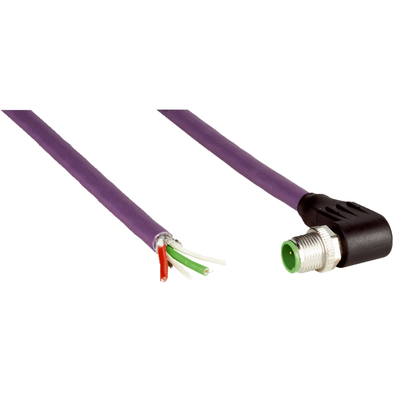 Connecteur et câble; Autre connecteur mâle et câble; Type de signal: PROFIBUS DP; Raccordement A: Connecteur mâle, M12, 5 pôles, coudé, Codage B; Raccordement B: Extrémité de câble ouverte; Câble: 10 m, 2 fils, PUR, sans halogène; Blindage: Blindé; Domaine d'utilisation: Domaine de l’huile/des lubrifiants, Mode chaîne porte-câble