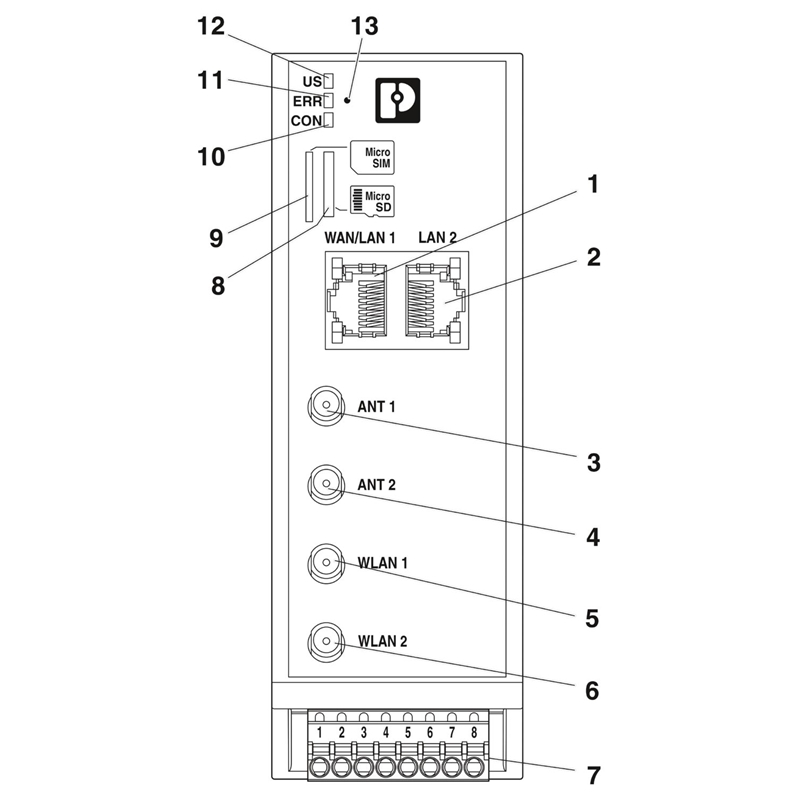 Routeur 4G LTE industriel, appareil de l'UE, procédure de repli 3G (UMTS/HSPA) et 2G (GPRS/EDGE), point d'accès WLAN 802.11a/b/g/n 150 Mbit/s 2,4 GHz + 5 GHz, switch à 2 ports, pare-feu, NAT, compatibilité IPsec et OpenVPN, 4 DI, 2 DO