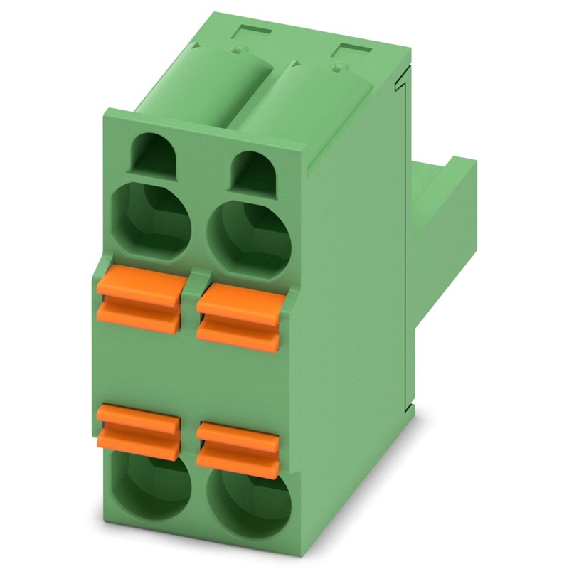 Connecteur Twin pour circuit imprimé, section nominale: 2,5 mm2, coloris: vert, intensité nominale: 12 A, tension de référence (III/2): 320 V, surface des contacts: Sn, type de contact: Connecteur femelle, nombre de potentiels: 2, nombre de rangées: 1, nombre de pôles: 2, nombre de connexions: 4, gamme d'articles: TFKC 2,5/..-ST, pas: 5,08 mm, type de raccordement: Raccordement à ressort Push-in, sens d'enfichage conducteur/circuit imprimé: 0 °, clip de verrouillage: - Clip de verrouillage, système débrochable: COMBICON MSTB 2,5, verrouillage: sans, type de fixation: sans, type de conditionnement: emballé dans un carton