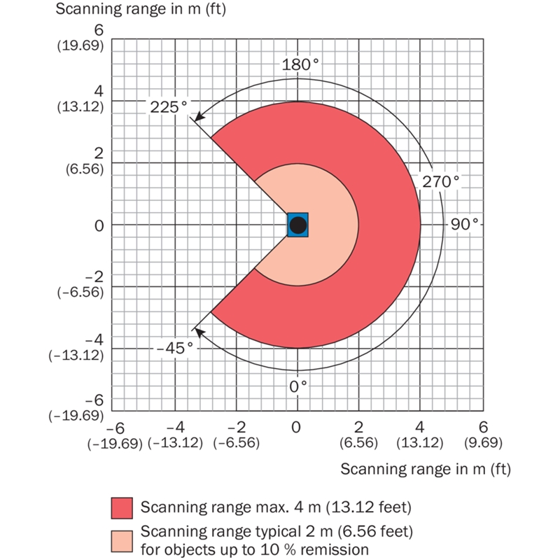 Capteur 2D-LiDAR; Domaine d’application: Indoor; Application intégrée: Évaluation des champs; Principe de mesure: HDDM+; Zone de fonctionnement: 0,05 m ... 4 m; Résolution angulaire: 1°; Nombre de jeux de champs: 16; Sorties numériques: 3 (NPN, 1 « Device Ready » en plus); Raccordement: 1 x connecteur d'appareil Sub-D-HD 15 pôles (0,9  m); Série: TiM3xx