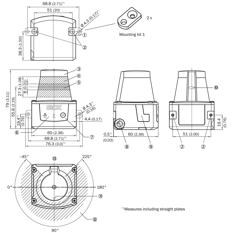 • Raccordement électrique: 1 x câble avec connecteur mâle M12 12 pôles (0,3  m), 1 x connecteur femelle Micro-USB, type B
