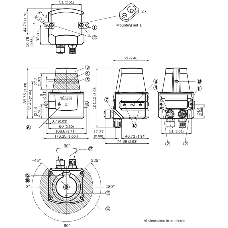 • Sorties numériques: 3 (PNP, pour afficher la violation d’un champ de protection, 1 « Device Ready » en plus)
