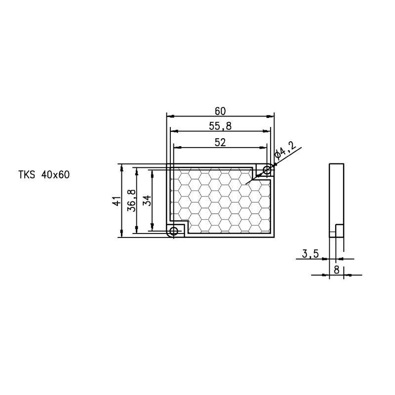 • Cote de montage (l x H, e): 41 mm x 60 mm x 8 mm