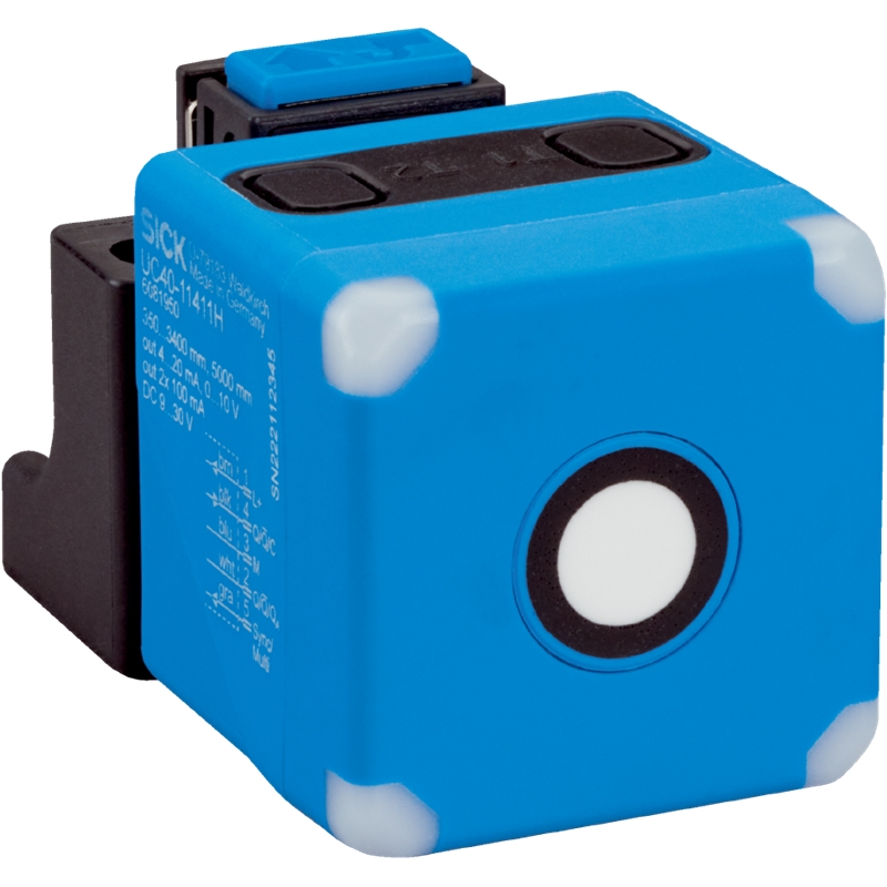 Capteur de distance à ultrasons, UC40, UC40-11211H, Interface de communication: IO-Link, Portée de travail, portée limite: 65 mm ... 350 mm, 600 mm, Raccordement: Connecteur mâle, M12, 5 pôles, Sortie d'émission: Droit, Temps de ré