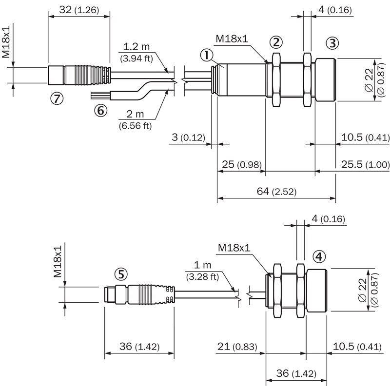 • Format: Cylindrique fileté, M18 x 1, faisceau axial