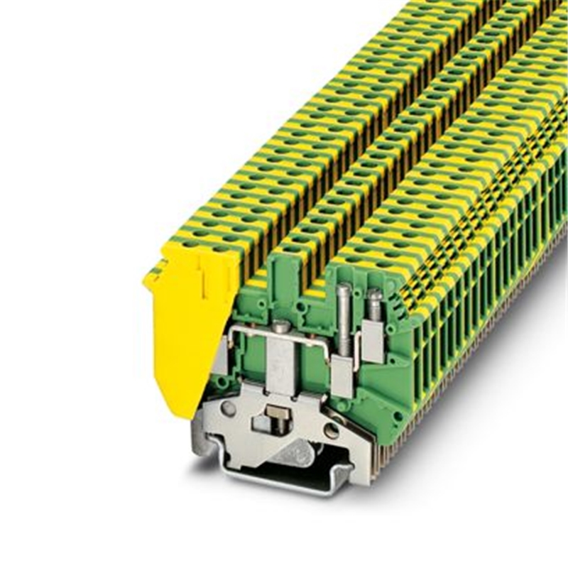 Bloc de jonction à 1 étage à connexion double des deux côtés, sections : 0,2 - 2,5 mm², largeur : 5,2 mm, couleur : vert/jaune