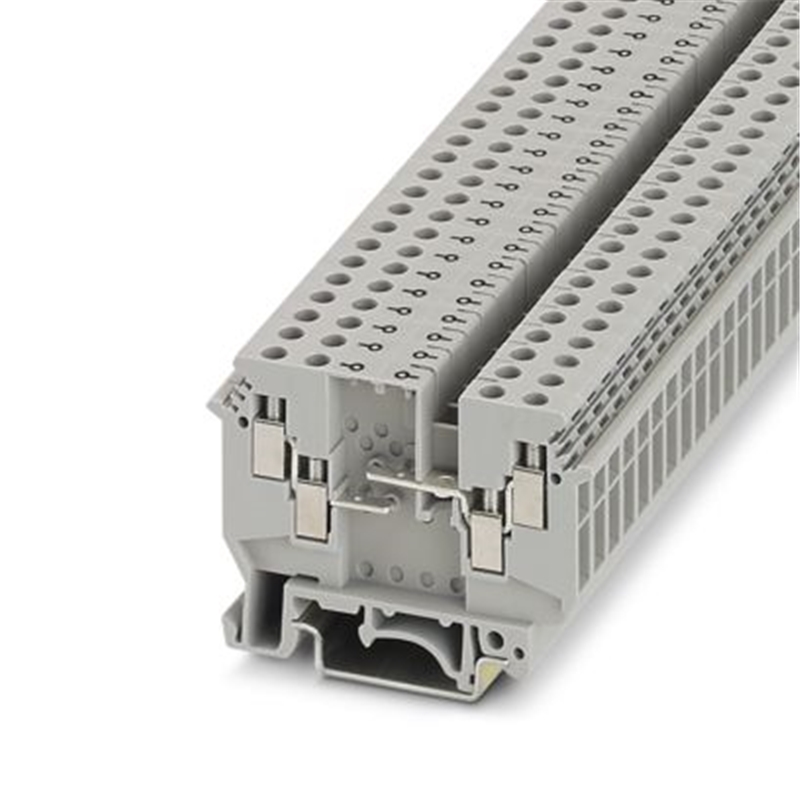 Bloc de jonction simple, à vis, sections : 0,2 mm² - 6 mm², I nom. : A, U nom. : 630 V, longueur : 63,5 mm, largeur : 6,2 mm, couleur : gris, montage : NS 35/7,5, NS 35/15, NS 32