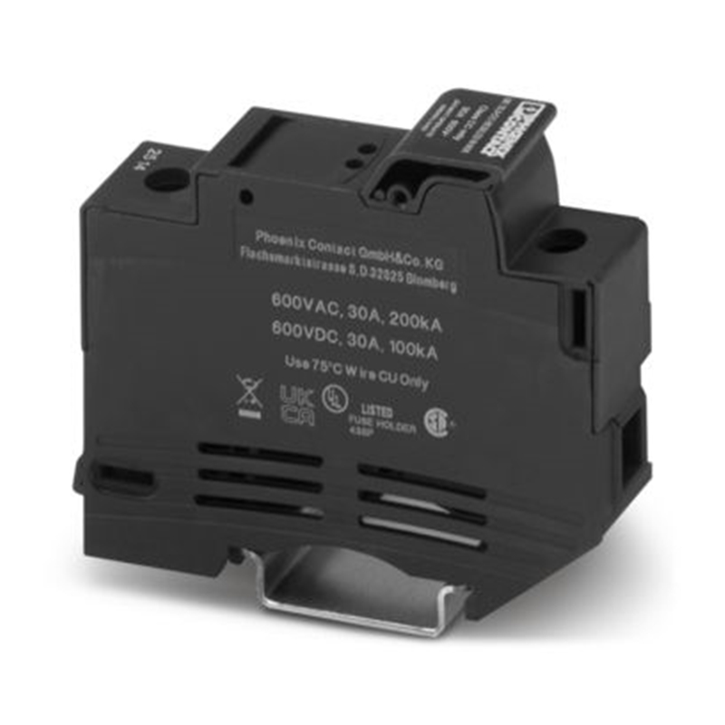 Bloc de jonction-fusibles, à vis, sections : 1,5 mm²- 25 mm², I nom. : 32 A, U nom. : 600 V, largeur : 18 mm, type de fusible : Classe CC, type de montage : NS 35/7,5, NS 35/15, noir