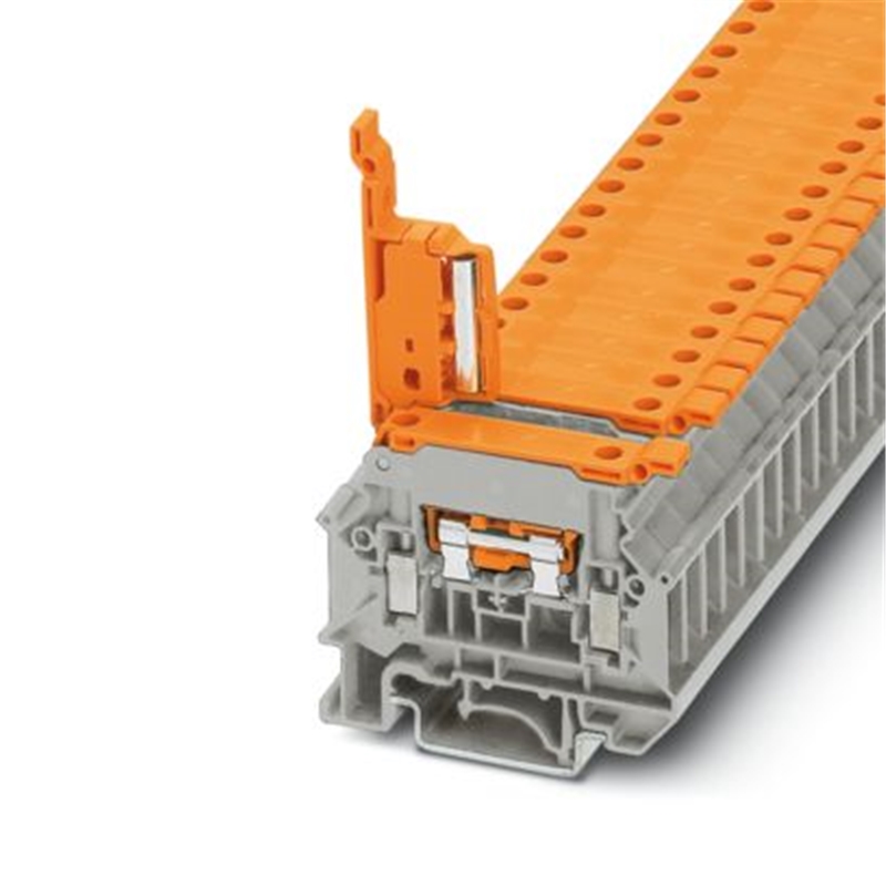 Bloc de jonction de sectionnement, à vis, sections : 0,2 mm² - 6 mm², I nom. : 16 A, U nom. : 500 V, longueur : 58 mm, largeur : 8,2 mm, couleur : gris/orange, montage : NS 35/7,5, NS 35/15, NS 32