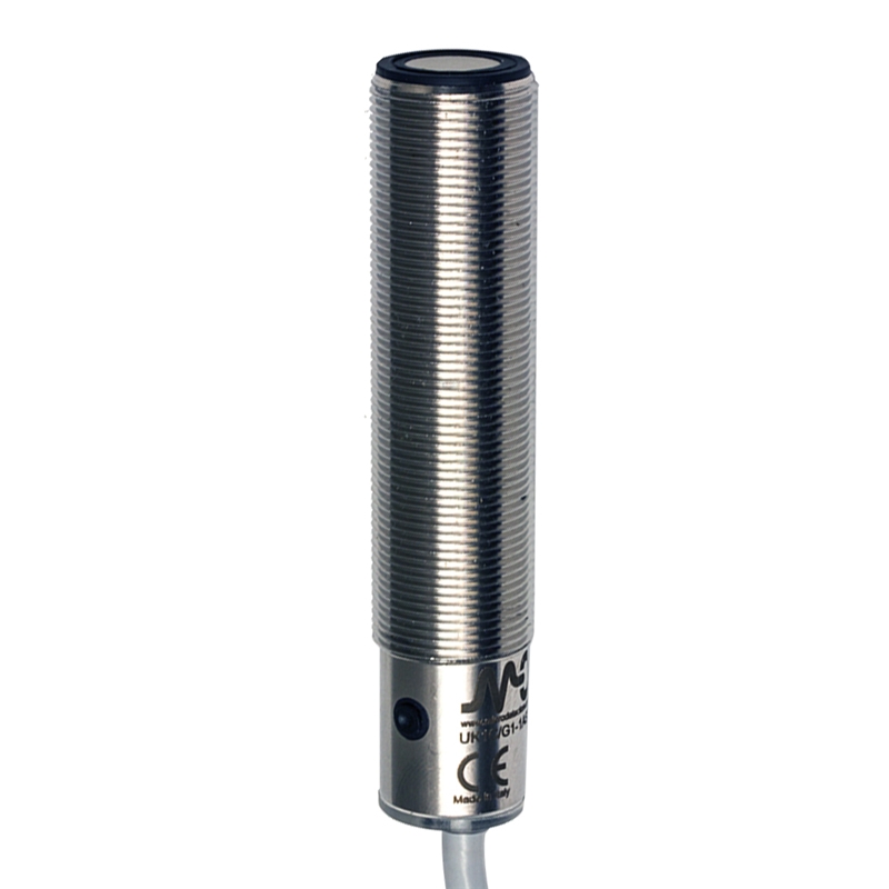 Ultrasonic sensor M18 analog. 0-10 V+ NPN NO/NC 100-900 mm câble 2m with teach-in button, AISI316L stainless steel housing, cULus
