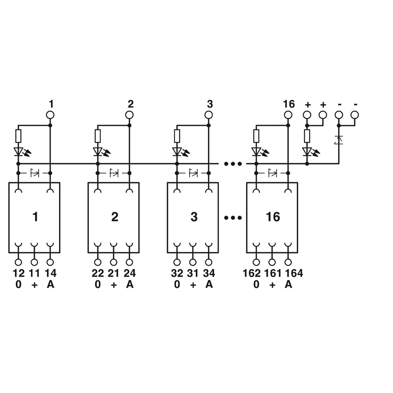 Module VARIOFACE, pour 16 relais ou optocoupleurs miniatures enfichables, avec voyant, tension d'entrée 24 V DCL'article est fabriqué spécialement pour vous et ne pourra pas être retourné.
