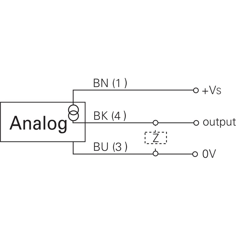 Détecteur de mesure de distance à ultrasons; Format: Cylindrique fileté, M30 x 1.5, faisceau axial; Type de détection: Directe sur l'objet; Distance de commutation Sd: 400 ... 2500 mm; Réglage: Teach-in; Sortie analogique: Tension, 0-10V / 10-0V; Raccordement: Câble 2 m; Tension d'alimentation: 15-30Vdc; Dimensions: Ø 30 (44,5) x 95 mm; Matériau du boîtier: Laiton nickelé; Indice de protection: IP67; Température de fonctionnement: -25 ... +60 °C