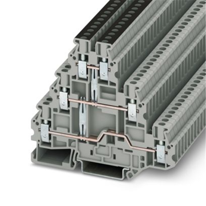 Bloc de jonction à plusieurs étages, sections : 0,14 mm² - 4 mm², à vis, largeur : 5,2 mm, couleur : gris, type de montage : NS 35/7,5, NS 35/15