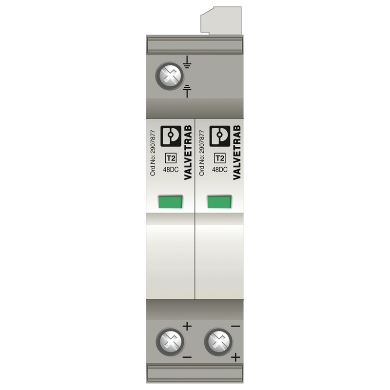 Parasurtenseur enfichable, 2 fils mode commun - Type 2 - Uc: 48 VDC - In: 20 kA - avec contact de défaut (Fiches garanties 5 ans), VALVETRAB SEC