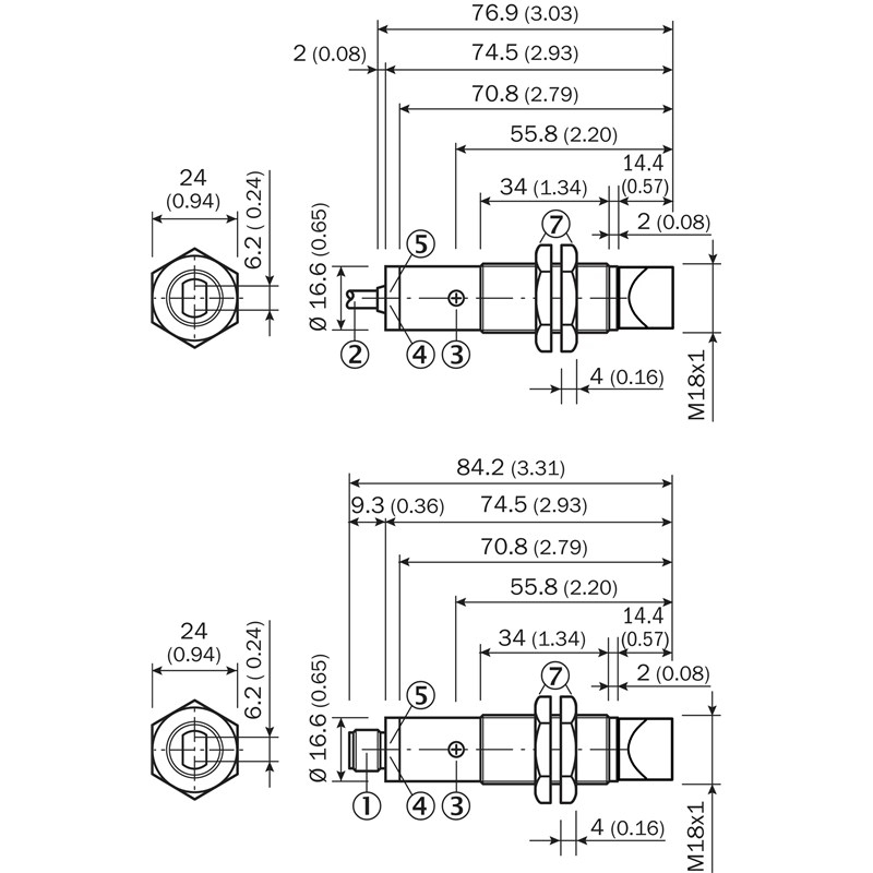 Capteur photoélectrique; Format: Cylindrique fileté, M18 x 1; Principe du capteur: Barrière réflex; Principe de détection: Double lentille; Distance de commutation max.: 0,05 m ... 5,5 m (PL80A); Réglage: Potentiomètre, 270° (sensibilité); Source d'émission: LED, Lumière rouge visible, Polarisée; Taille du spot lumineux (distance): Ø 270 mm (4 m); Sortie de commutation: PNP; Mode de commutation: Commutation sombre; Temps de réponse: max. 0,5 ms ; Fréquence de commutation: 1.000 Hz; Raccordement: Connecteur mâle M12, 4 pôles, 3 fils; Tension d’alimentation Ub: 10-30Vdc; Longueur du boîtier: 84,2 mm; Matériau du boîtier: Métal, laiton nickelé et PC; Matériau de l'optique: Plastique, PMMA; Indice de protection: IP67; Température de fonctionnement: –25 °C ... +55 °C; Compris dans la livraison: Réflecteur P250; Série: V180
