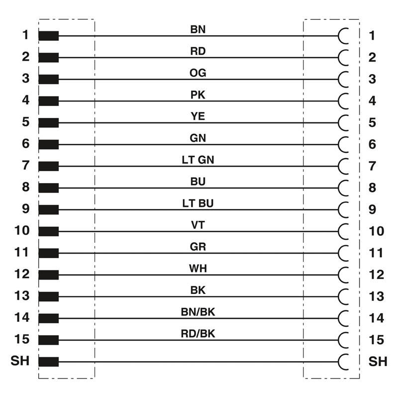 Câble D-SUB préconfectionné, blindé, 15 pôles, souple (7 fils), coloris RAL 7000 (gris), indice de protection IP20, tête 1 à connecteur femelle Shell 2 et sortie de câble droite, tête 2 à connecteur mâle Shell 2 et sortie de câble droite, longueur: 2 m