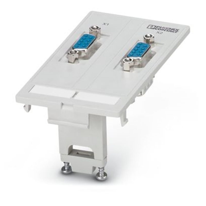 Plaque frontale pour données avec isolants pour contacts, plastique, 2 x D-SUB 9, connecteur femelle sur connecteur mâle