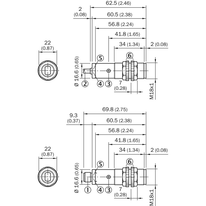• Format: Cylindrique fileté, M18 x 1, faisceau axial
