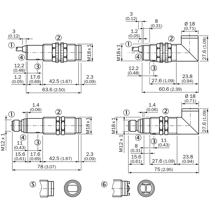 • Format: Cylindrique fileté, M18 x 1, faisceau axial