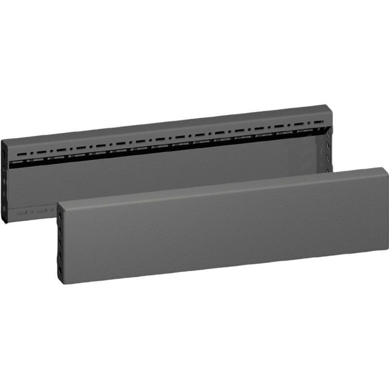 Pour la finition latérale d'un socle et pour la stabilisation complémentaire ou pour l'équipement intérieur de socles juxtaposés. Sur des socles d'une hauteur de 200 mm, il est possible de monter une plaque d'une hauteur de 200 mm ou deux plaques d'une hauteur de 100 mm.