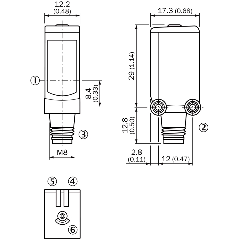 Capteur photoélectrique; Format: Parallélépipédique, Slim; Principe du capteur: Barrière; Principe de détection: Émetteur-récepteur; Distance de commutation max.: 0 m ... 60 m; Réglage: Touche d'apprentissage simple; Source d'émission: Laser, Lumière rouge visible; Taille du spot lumineux (distance): Ø 1 mm (500 mm); Sortie de commutation: PNP; Type de commutation: Antivalente; Mode de commutation: Commutation claire/sombre; Temps de réponse: max. 0,5 ms; Fréquence de commutation: 1.000 Hz; Interface de communication: -; Raccordement: Connecteur mâle M8, 4 pôles; Tension d'alimentation: 10-30Vdc; Dimensions (l x H x P): 12,2 mm x 41,8 mm x 17,3 mm; Matériau du boîtier: Plastique, Novodur; Matériau de la vitre frontale: Plastique, PMMA; Indice de protection: IP67, IP66; Température de fonctionnement: –10 °C ... +50 °C; Série: W4