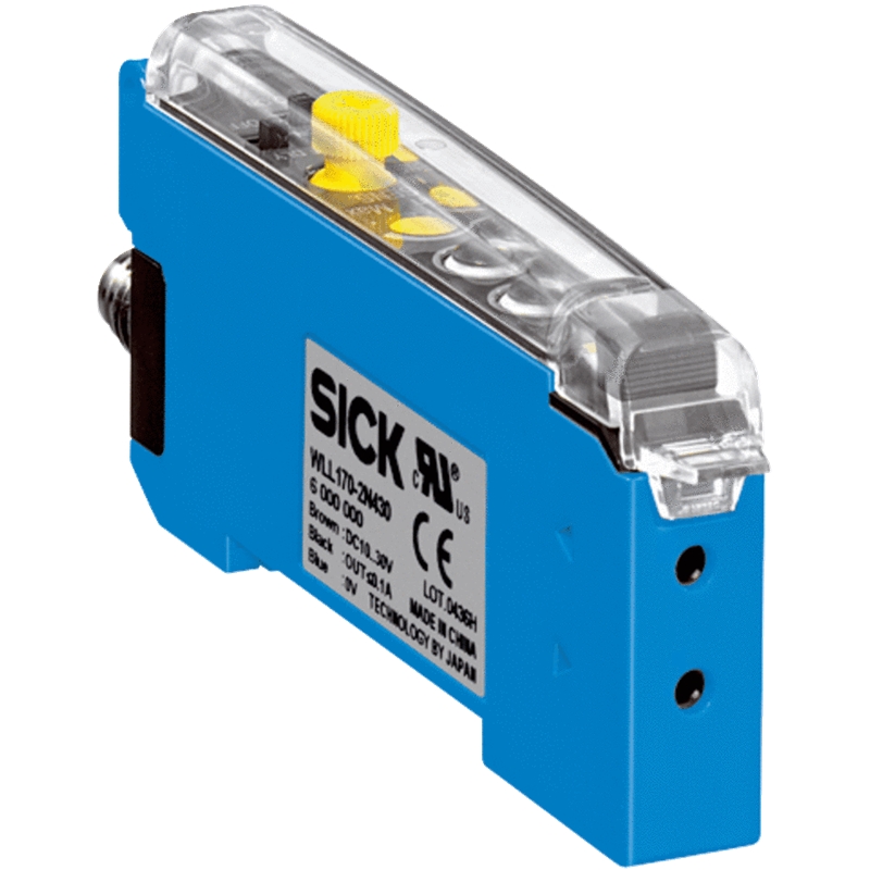 Le capteur photoélectrique à fibres optiques avec concept d’utilisation simple convient particulièrement aux applications standard et lorsqu’il est question de temps de réponse rapides. Des modèles WLL170(T) adaptés, optimisés pour diverses caractéristiques d’application comme la détection de tous petits objets, de marques en couleur ou d’objets transparents, sont disponibles. WLL170T-2 avec apprentissage pour lequel le seuil de commutation est réglé automatiquement par pression de touche ou par câble ou WLL170-2 avec réglage manuel du seuil de commutation à l’aide d’un potentiomètre. Les deux modèles existent en version grande vitesse avec une fréquence de commutation de 10 kHz pour les réactions les plus rapides. Des appareils sont disponibles avec LED émettrice rouge ou verte pour une détection parfaite des contrastes de couleur. Les tâches de détection sont résolues de manière fiable et sûre avec les conducteurs optiques de la série LL3.