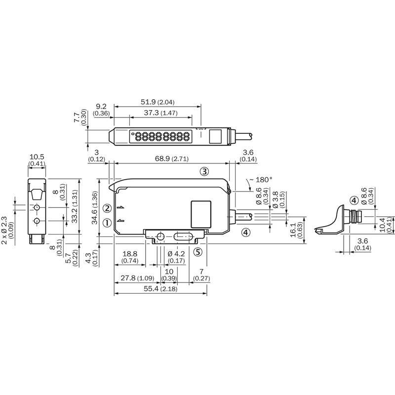 Amplificateur pour fibres optiques; Type d’appareil, détail: Unité de base; Distance de commutation max.: 12 ... 20 m; Réglage: Commandé par menus, touche d'apprentissage; Source d'émission: LED, Lumière rouge visible; Nombre de sorties de commutation: 2; Sortie de commutation: PNP; Mode de commutation: Commutation claire/sombre; Entrée: -; Affichage: Écran numérique 8 digits; Temporisation: Programmable, 0 ms ... 9.999 ms; Raccordement: Connecteur mâle M8, 4 pôles; Tension d'alimentation: 12-24Vdc; Dimensions (l x H x P): 10,5 mm x 34,6 mm x 71,9 mm; Matériau du boîtier: Plastique, ABS/PC; Indice de protection: IP50; Température de fonctionnement: –25 °C ... +55 °C; Contenu de la livraison: Équerre de fixation BEF-WLL180; Caractéristiques spécifiques: Paramètre préréglé, Anti-interférence; Série: WLL180T